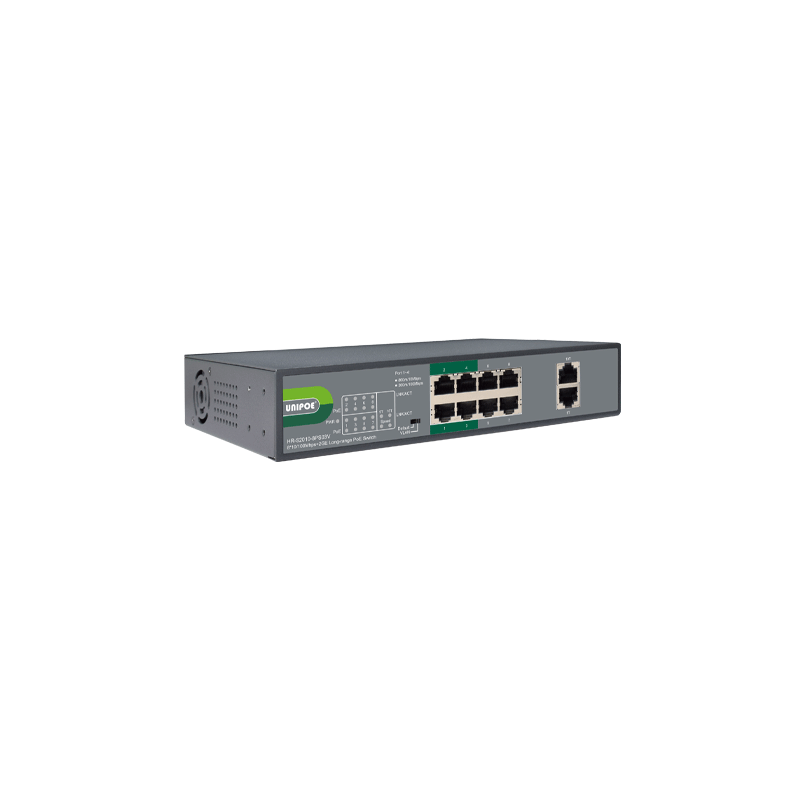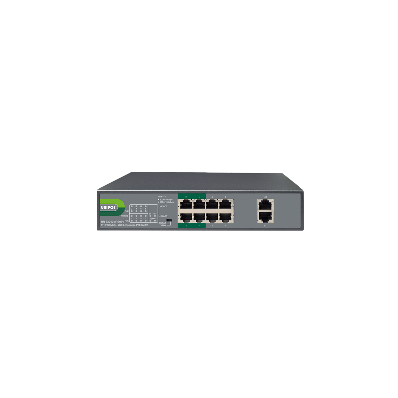 8 个百兆 RJ45 端口+2个千兆电口,800米超远距离传输PoE交换机