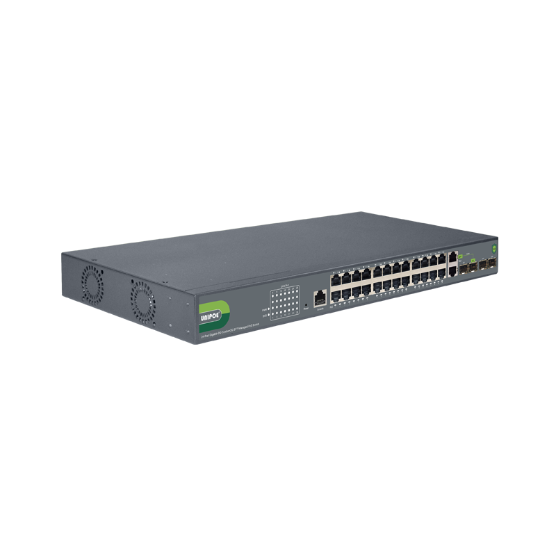 24个千兆PoE电口+2个千兆Combo口+2个千兆SFP光口+1个Console口,全千兆弱三层PoE运维交换机